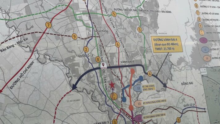 (L HOLDING) – Bình Dương – Đường Vành đai 4 TPHCM giai đoạn 1 được xây dựng 4 làn xe, riêng đoạn đi qua KCN VSIP 2A và Mỹ Phước 3 xây dựng 10 làn xe.